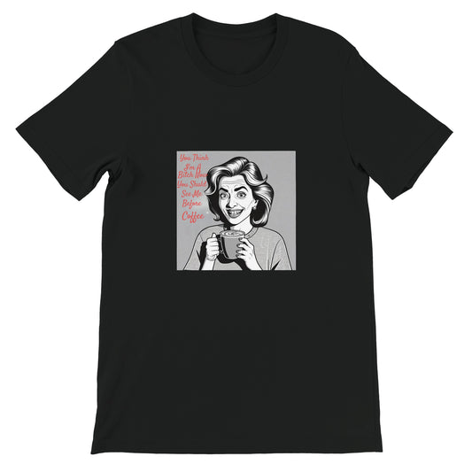 Before Coffee: Premium Unisex Crewneck T-shirt | Bella + Canvas 3001